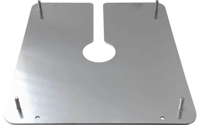 Diese Montageplatte aus Aluminium erleichtert die Positionierung von ALDEN Satellitenantennen auf Dächern von Kastenwagen. Durch den Schlitz in der Montageplatte können die Anschlußkabel in einer Sicke unter der Antenne herausgeführt werden.