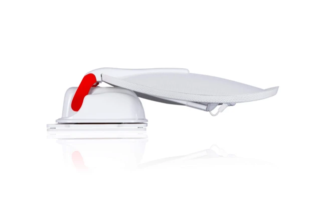 Die Außenhaut der leichtgewichtigen AS2 HD Serie besticht durch eine moderne Linienführung, welche dem Designverständnis unserer Zeit entspricht und sich nahtlos in die vorherrschende Optik aktueller Reisemobile und Wohnwagen integriert. Zum edlen Look der Antenne trägt auch der gesiebte Offset-Spiegel bei, der mit seiner gelochten Oberfläche für ein unauffälliges, fast schon zu übersehendes Erscheinungsbild und eine einzigartige Windlastreduzierung verantwortlich ist.