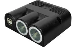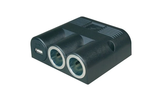 Aufbaudreifachsteckdose 12V DC mit zwei Powersteckdosen.