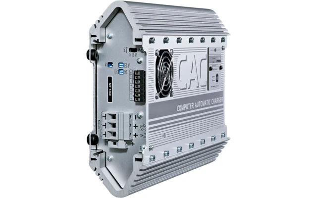 Um ein Beispiel zu nennen: Über die abnehmbare Fernbedienung kann der momentane Betriebszustand im Innenraum abgelesen und die geräuschlose Nacht-Ladung aktiviert werden. Wird vergessen, diese am nächsten Morgen zu deaktivieren, beendet der Lader den Nacht-Modus automatisch. Aufgrund ihres Kühlsystems – was in manchen Reisemobilen wegen fehlender Belüftung von Vorteil sein kann – sind diese Geräte etwas schwerer und fallen auch größer aus als die PL-Serie.