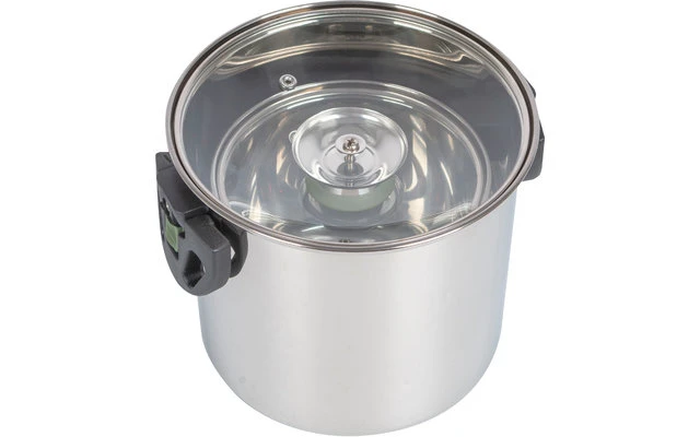 Jeder Topf hat einen Glasdeckel mit hitzebeständigem Knauf. Darüber hinaus hat jeder Topf hitzebeständige und einklappbare Handgriffe. Diese Griffe lassen sich nach dem Gebrauch einfach einklappen, so dass die Töpfe kompakt zu verstauen sind. Sparen Sie bis zu 40% Platz! Die Töpfe sind schmal und hoch und damit bestens geeignet für den begrenzten Platz auf Gasbrennern. Kann auf Gas-, Keramik- und Elektroherden verwendet werden.