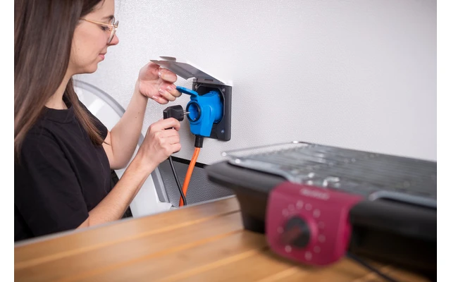 Für den Campingbereich und den ständigen Einsatz im Freien. Spritzwassergeschützt, IP 44.