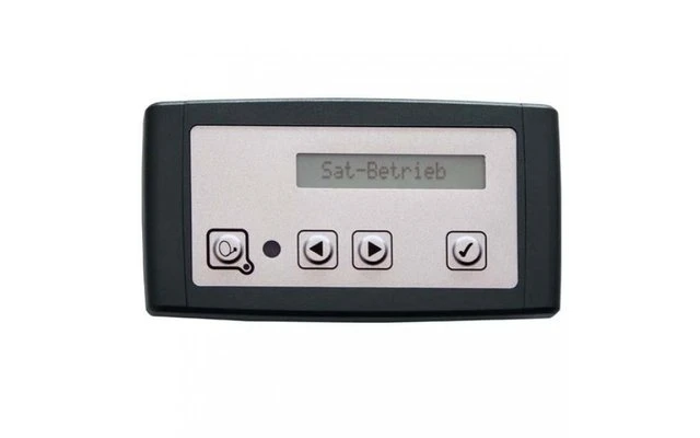 Das Steuergerät (Maße: BxHxT = 20 x 3 x 11,2 cm), vollautomatische Zentrale im Inneren des Fahrzeugs, beinhaltet die gesamte Elektronik der Sat-Anlage und kann durch seine flache Bauweise unsichtbar im Schrank untergebracht werden. Zusätzlich angebracht wird nur das handliche Bedienteil, das über wenige, anwenderfreundliche Tasten verfügt (siehe Bild – Maße: BxHxT = 14 x 7,1 x 3,5 cm). Auf Knopfdruck fährt die Antenne in die letzte Empfangsposition (LEM). Wird dort kein Bild empfangen, startet sofort die vollautomatische Suche. Das hintergrundbeleuchtete Display informiert Sie dabei über alle Funktionen.