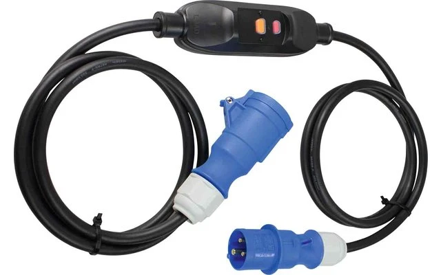 Zuverlässiger Personenschutz vor gefährlichen Stromschlägen. Fehlerströme werden in Sekundenbruchteilen erkannt und die Stromzufuhr unterbrochen. Personenschutz-Zwischenschalter 30mA mit 2 x 1,5m schwerer Gummischlauchleitung H07RN-F 3G1,5 mit CEE-Stecker und CEE-Kupplung, 3-polig.