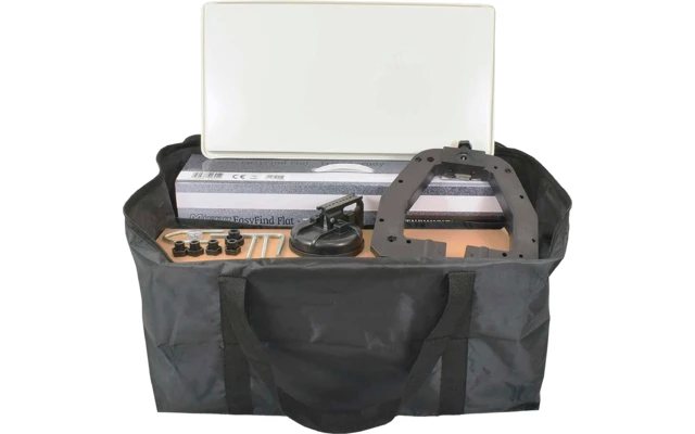 Die EasyFind II Flachantenne ist für den Empfang aller gängigen Satellitenprogramme in Mittel-, Süd- und Südosteuropa geeignet. Mit Hilfe das EasyFind II Messgerätes, welches auf der Rückseite verbaut ist, wird die Sat-Antenne zur schnellsten manuell eingerichteten der Welt. Durch exakte Ausrichtung des Neigungswinkels und der Orbitalposition lässt sich in Sekundenschnelle der gewünschte Satellit finden. Durch den mitgelieferten Multifunktionshalter inklusive Saugfuß gibt es eine Vielzahl von Installationsmöglichkeiten für das EasyFind Traveller Kit II. Die Anlage wird inkl. Multifunktionshalterung, LED TV und Tragetasche geliefert.