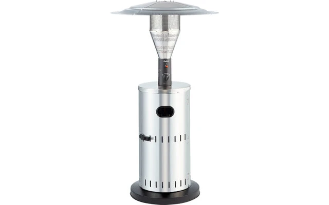 Seine spezielle Konstruktion und Materialien sorgen für einen sicheren Stand. Im Korpus aus gebürstetem Edelstahl oder Stahl kann eine 11 kg Gasflasche verstaut werden. Besonders praktisch für die Aufstellung in der Gastronomie ist übrigens seine große Ablagefläche für Gläser und Aschenbecher. Für das platzsparende Verstauen lässt sich zudem auch das Standrohr versenken.