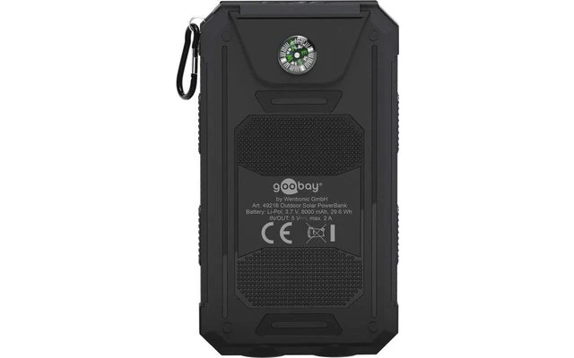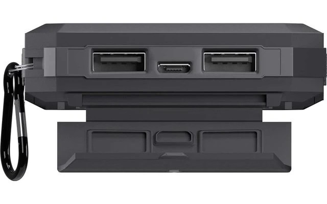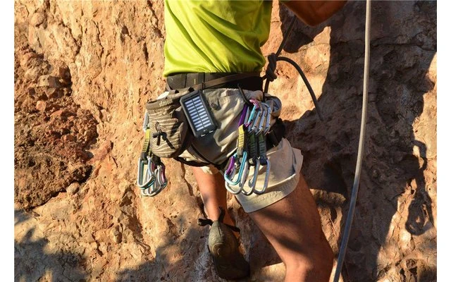- Karabiner sichert das Ladegerät an einem Rucksack – ideal für Wanderungen, Bergsteigen und andere Outdoor-Aktivitäten