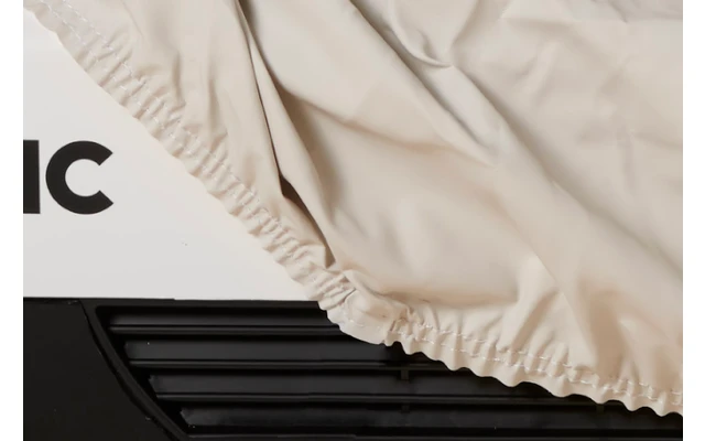 Schützt die hochwertigen Geräte während der Standzeiten und im Winter vor Laub, Sand und Feuchtigkeit. Am unteren Rand sorgt ein elastisches Gummiband für dichten Abschluss.