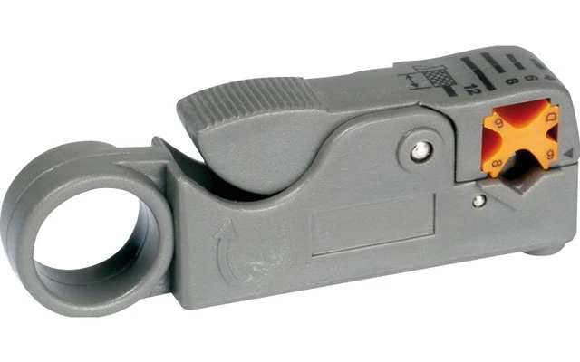 Zum Abisolieren von Koaxialkabeln in einem Arbeitsschritt. Die Schnitttiefe ist für jedes Messer eizeln einstellbar.