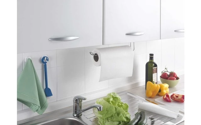 Easy Roll Papierrollenhalter Polytherm. Mit exklusiver Metaltex-Polytherm-Beschichtung. Für alle handelsüblichen Papierrollen geeignet. Ohne Werkzeug einfach unter den Regalboden stecken.