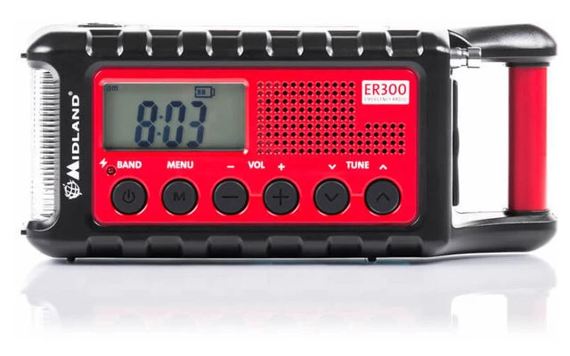 Das Midland ER 300 ist ein wahrer Alleskönner: Das Outdoor Radio im kompakten Format versorgt die Hörer auch unterwegs ohne externe Stromzufuhr mit aktuellen Informationen. Als Solarradio bzw. Kurbelradio ohne Strom ist es perfekt geeignet für vielfältige Aktivitäten im Freien – ob beim Wandern, Skilaufen, Campen, am Strand oder in Alltagssituationen. Auch bei einem Picknick im Grünen unterhält das Kurbelradio zuverlässig mit Musik (Empfang von UKW und MW Radiosendern). Selbst in Gefahrensituationen, wie bei Unwettern, ist es ein zuverlässiger Begleiter und informiert als Notfall-Radio über nützliche Informationen.