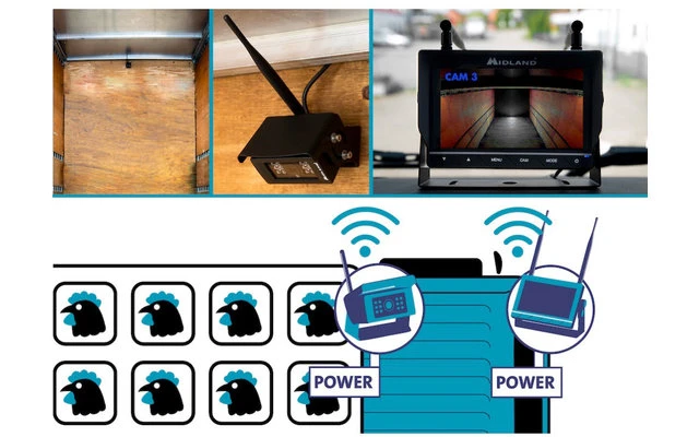 Das neue innovative Funkkamera-System von Midland: Mit bis zu vier Kameras ermöglicht der Truck Guardian Lkw-Fahrern sowohl ihre Ladung als auch die Straße zeitgleich zu überwachen. Die Nachtsicht-Funktion und integrierte Mikros für akustische Feedbacks gewährleisten ein optimales Monitoring und damit mehr Sicherheit. Im Laderaum bzw. Anhänger können Kameras zur Beobachtung der Ladung angebracht werden (z. B. bei Verrücken der Ladung in steilen Kurven oder bei Tiertransporten von Vorteil).