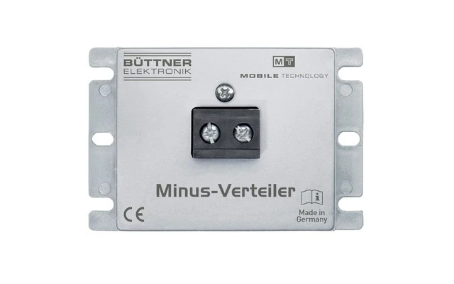 Kompakter 12fach Verteiler für die Batterie-Minusseite. Eingang über Sammelklemme (max. 50 A); Verteilung über 12 einzelne Ausgänge (max. 20 A).