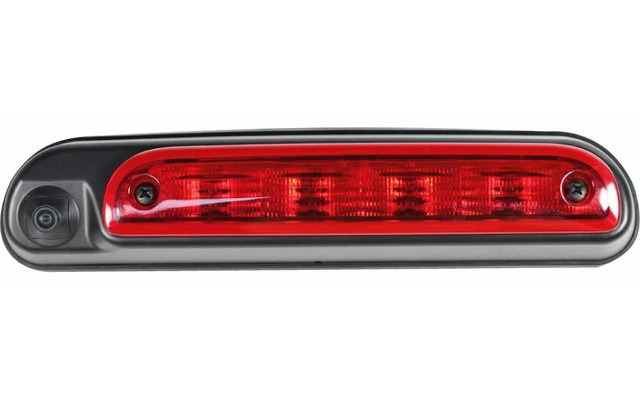 Konsole für dritte Bremsleuchte mit integrierter Dual View-Kamera. Der Sichtwinkel ist auf die Einbauposition abgestimmt. Sehr schnelle Montage – die Konsole wird einfach zwischen Karosserie und Bremsleuchte montiert. Die Dichtung befindet sich auf der Karosserieseite.