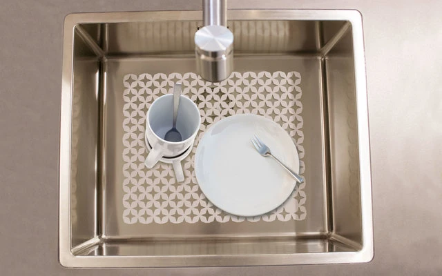 Die Spülbeckenmatte Spacewonder mit dem wirkungsvollen Design schützt Ihre Spüle und das Geschirr vor Kratzern und Sprüngen. Falls gewünscht, kann sie mit der Schere zugeschnitten werden.