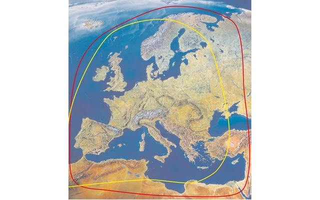 Europa, Nordafrika, Naher Osten. Die Oyster V® überzeugt mit maximaler Reichweitenstärke. Wesentlichen Anteil daran hat der Antennenspiegel mit 85 cm Durchmesser. Die angegebenen Empfangsreichweiten zeigen die ungefähren Kernreichweiten. Die Reichweite der einzelnen Programme liegt nicht im Einflussbereich von ten Haaft. Für die tatsächlichen Reichweiten sind ausschließlich die jeweiligen Satellitenbetreiber verantwortlich. Ein Fortbestand der hier gezeigten Empfangsreichweiten kann für die Zukunft nicht zugesichert werden.