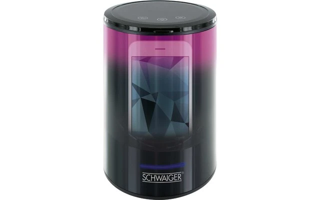 Der 360° Ozon Sterilisator von SCHWAIGER sterilisiert die Oberflächen Ihrer Alltagsgegenstände und befreit sie, bei richtiger Anwendung, von bis zu 99,9% der meisten Bakterien und Viren. Egal ob Smartphone, Schlüssel oder Geldbeutel, dank der optimalen Größe ist der Sterilisator für viele Gegenstände geeignet. Der integrierte USB Port ermöglicht es Ihnen mobile Geräte während des Sterilisationsvorgangs zu laden. Zeitsparender Sterilisationsvorgang, ca. 20 Minuten. Die LED Beleuchtung kann per Touchpad beliebig eingestellt werden (Helligkeit, Farbauswahl), der Sterilisator lässt sich so, z.B. auch als Nachtlicht nutzen.