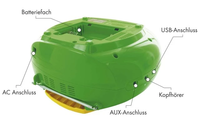 Die portable Boombox von SCHWAIGER vereint einen CD-Player, einen Kassettenspieler sowie ein FM Radio in einem und bietet dabei eine Vielzahl an Wiedergabemöglichkeiten: Spielen Sie Ihre Lieblings-CDs ab, begeistern Sie Ihre Kinder mit klassischen Hörspielkassetten oder schließen Sie über AUX und USB Ihre modernen Wiedergabegeräte an. Und das fast überall, wo Sie gerade sind. Denn die Boombox können Sie einfach über das Netzkabel zuhause anschließen oder mit dem praktischem Tragegriff bequem batteriebetrieben überall hin mitnehmen.