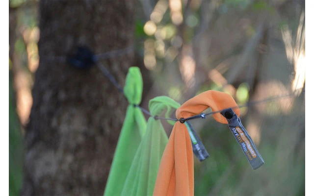 So klein und kompakt, ist dies die perfekte Wäscheleine, die du auf allen deinen Reisen mitnehmen kannst. Unsere Wäscheleine verwendet zwei parallele Schnüre mit verschiebbaren Perlen, die an den Schnüren entlang gleiten. Hänge die Wäscheleine auf, indem du die Enden um einen Aufhängepunkt wickelst und dann einhakst. Nasse Wäsche wird zwischen den beiden Schnüren durch Zusammenschieben der Perlen gesichert.