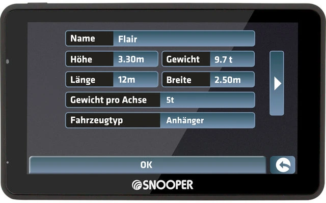 VENTURA erstellt eine Route basierend auf den Eigenschaften Ihres Fahrzeuges. Hinterlegen Sie diese einfach im Gerät, und VENTURA wird eine sichere, Reisemobil-freundliche Route berechnen. Die Routen werden auf Grundlage von Straßen mit angemessener Breite und Höhe berechnet; dabei werden niedrige Brücken oder Gewichtseinschränkungen sowie viele weitere Gefahren vermieden. Snooper hat zusammen mit den größten Camping- und Stellplatzspezialisten Europas (ACSI, Bordatlas und Camperstop) eine Suchfunktion nach persönlichen Ausstattungswünschen integriert, welche auf die umfangreichste verfügbare Datensammlung für Campingplätze (9.000 Stück) und Stellplätze (15.000 Stück) zugreift.
