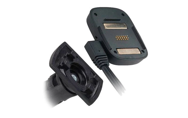 – Montage mittels aktiver Magnethalterung an der Windschutzscheibe: Bei Entnahme müssen vom Navi keine Kabel mehr abgezogen werden