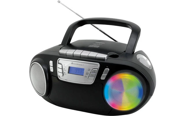 Top trendige Boombox – mit Mikrofon, Kassettenaufnahme und Disko-Speakerlicht von der Marke Soundmaster.