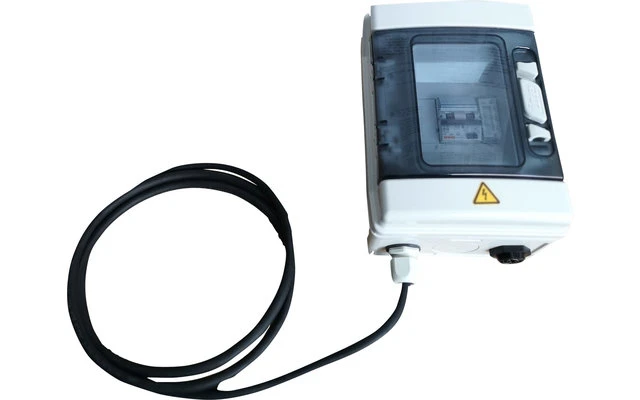 Normgerechte Energiesteckverbindung nach VDE 100-551-1. Der integrierte FI-Automat vom Typ A und die 16 A Leitungssicherung schützen die Benutzer und die PV-Anlage vor Überlastung, Isolationsschäden etc.. Gleichzeitig kann über den FI-Automat die PV-Anlage vom Netz getrennt werden.