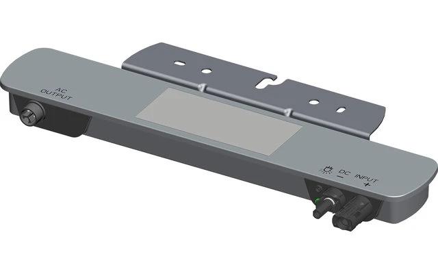 Der Modulwechselrichter wandelt den gewonnenen Gleichstrom in netzkonformen Wechselstrom um. Er kann wahlweise an der mitgelieferten Montagehalterung oder, mittels optional erhältlichen zusätzlichen Montagekabels, an einem beliebigen Ort angebracht werden. Eine gesetzlich vorgeschriebene Freischalteinrichtung (NA-Schutz) zugelassen nach EN 50438, VDE-ARN 4105, IP 67 ist in dem Wechselrichter bereits integriert. Dies garantiert, dass sich der Wechselrichter bei Stromausfall oder Netzabschaltung auf jeden Fall selbständig vom Stromnetz trennt. Mittels des optional erhältlichen SUNstick , Art.-Nr. 29019 ist eine drahtlose Kommunikation möglich.