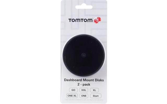 Klebeplatte zur Befestigung von Saugnapf-Haltern auf dem Armaturenbrett. Einfach zu entfernen – hinterlassen keine Klebstoffrückstände. Kompatibel mit allen TomTom-Geräten.