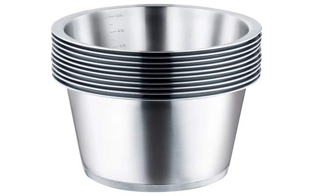 - Aufgrund der abnehmbaren Griffe sowie der konischen Form lassen sich die Töpfe und Pfannen platzsparend ineinander stapeln
