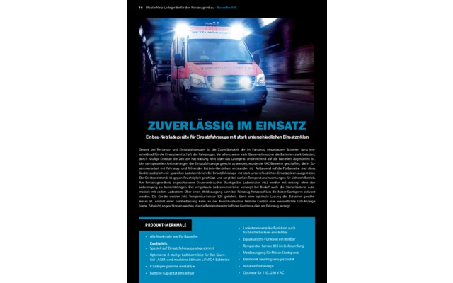 Vollautomatisches Batterie-Ladegerät mit 3 Ladeausgängen für Sonderfahrzeuge, Rettungswagen, Einsatz- und Feuerwehrfahrzeuge.